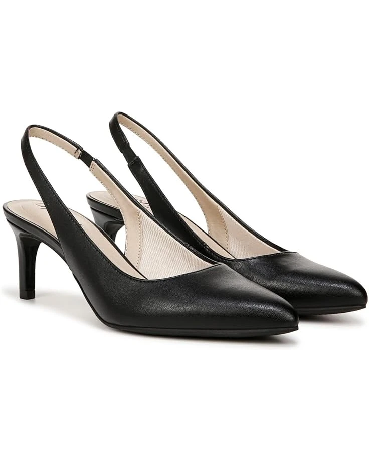 - The classic slingback with a modern twist. Wear these comfortable women’s heels and take on your day with confidence. Faux leather or microfiber upper, softly pointed toe, and slingback strap with built-in stretch for the perfect fit.