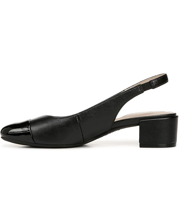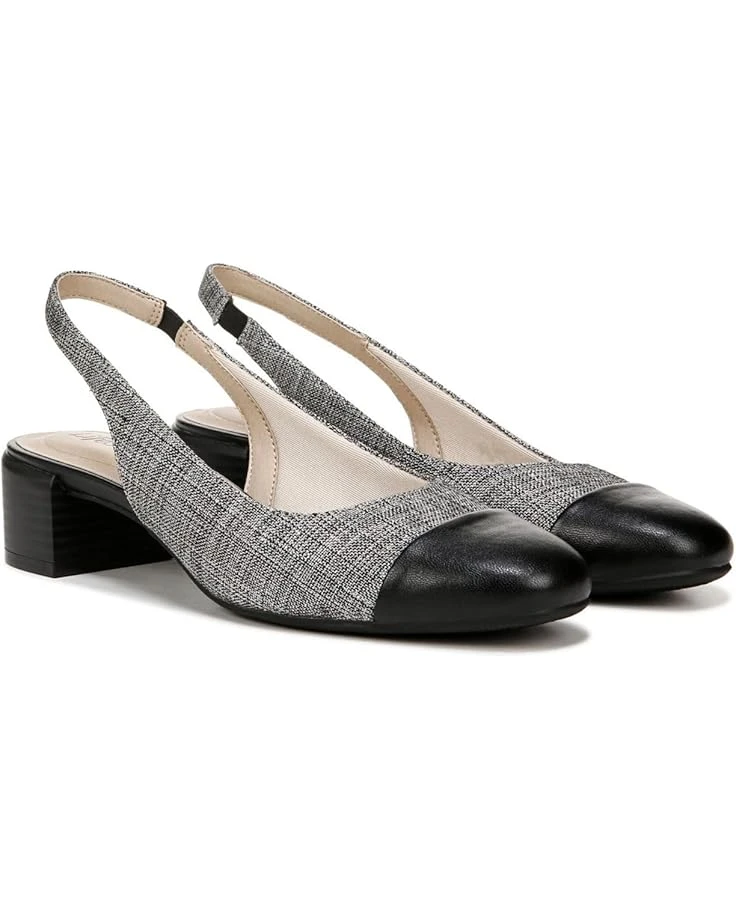 - A timeless silhouette, updated for today. This comfortable, LifeStride® Becoming low slingback heels with contrasting cap toe design will be a new favorite. Faux leather or fabric upper with contrast round cap toes and slingback strap with built-in stretch. The Soft System® Comfort package provides all-day support, flex, and cushioning.