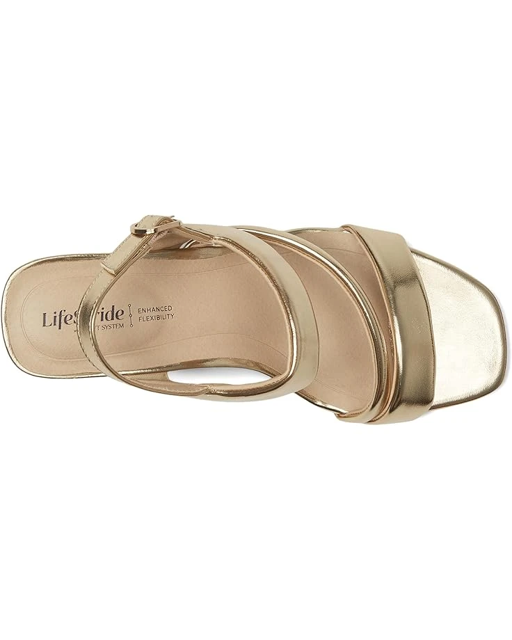 - Comfort meets chic in these strappy womens dress sandals with puffed cushion straps. Faux leather, raffia, or fabric upper with an open square toe, puffed cushion straps, heel slingback strap with adjustable buckle for the perfect fit, and built-in stretch. Insole filler crafted from partially recycled materials. Soft System® Comfort package provides all-day support, flex, and cushioning. Fab Flex Tech with a super flexible, ultra-padded platform heel for ultimate comfort. Traction sole for extra stability. Just right height 2 1/8 inch, angled block heel.