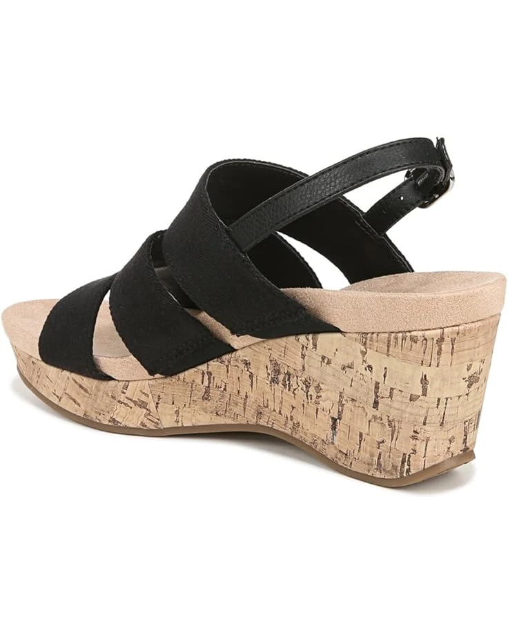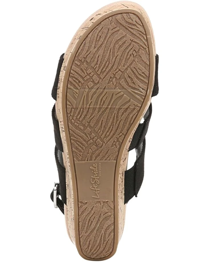 - Featuring a Soft System® comfort package that offers superior cushioning and flexibility, the LifeStride® Darby Slingback Wedge Sandals provide style and comfort. The faux leather heel sling strap of these sandals comes with an adjustable buckle closure that ensures a perfect fit. These heeled sandals feature a cork-wrapped design that offers a stylish look. Lightweight and stylish, these wedge sandals are perfect to pair with chic dresses and party outfits.