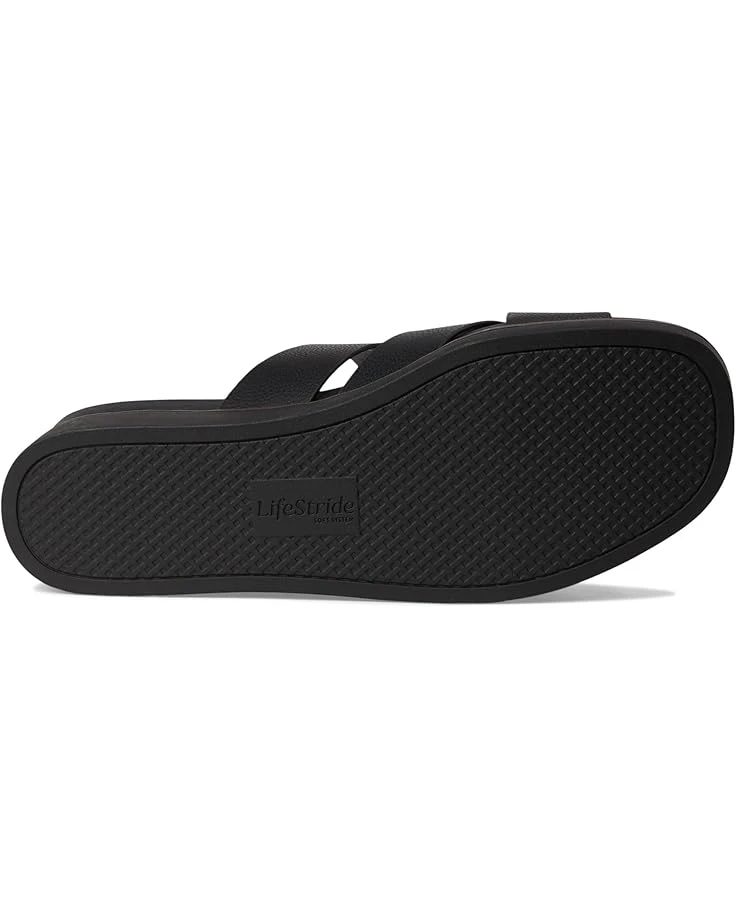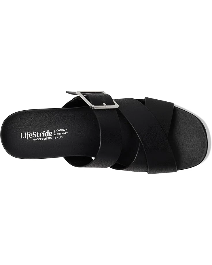 - Perfect for travel or every day, the LifeStride® Getaway, a versatile women’s strappy sandals have a trend-forward, yet classic feel. Platform sandals for women designed with faux leather straps, a soft square open toe, decorative buckle, and lightweight design. Linings crafted from partially recycled materials. Trusted Soft System® comfort technology for unmatched cushion, support, and flexibility in every pair. Traction sole for extra stability.