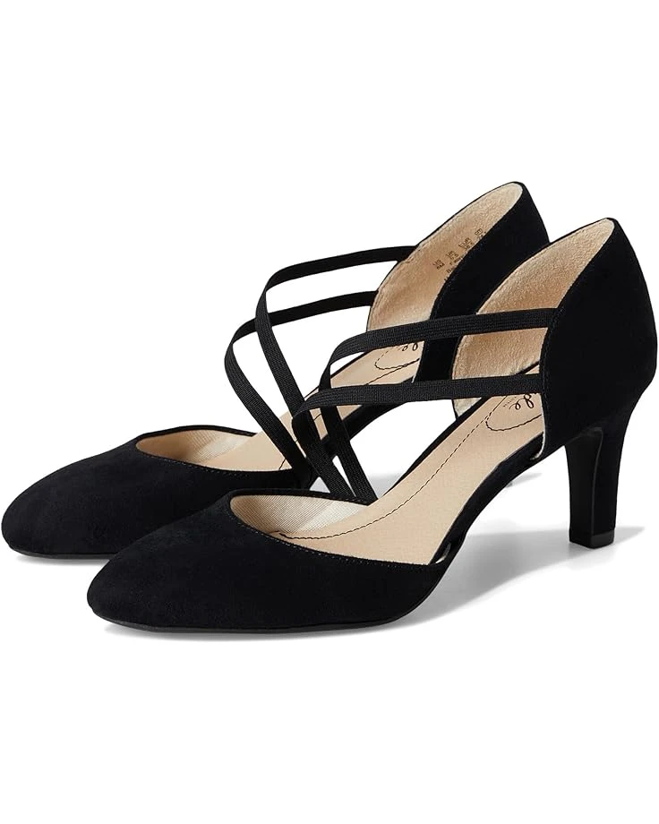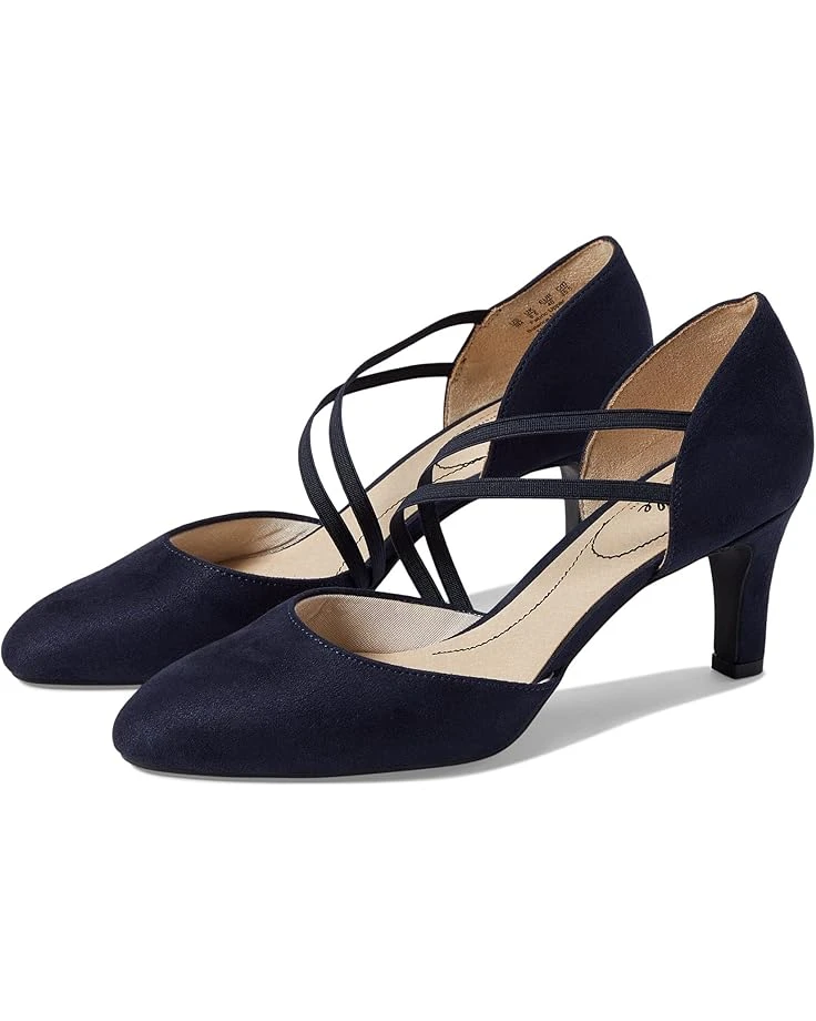 I was so pleased with these when I got them, even more stylish and flattering than in the photos. The slightly rounded toe is classic! I can wear an 8M in some heels if the toes are not too pointed but my feet are happier in a 7.5W . I don’t wear heels often so the height is not too extreme of a change for me and the straps across the arch help make the fit more secure.