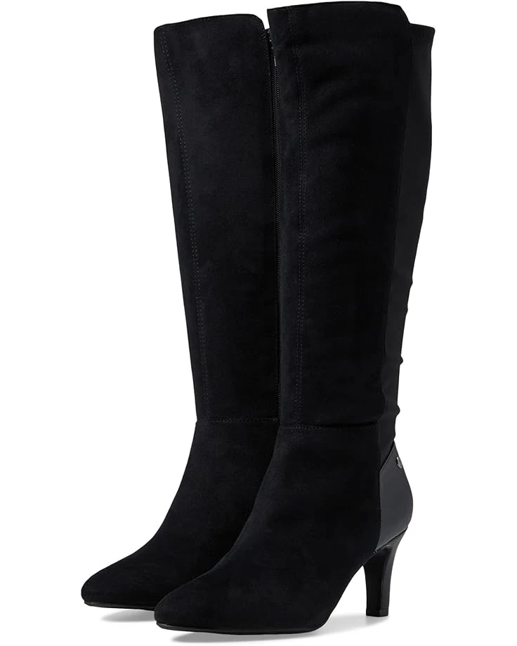 Beautiful boots, just what I needed for winter to wear with skirts. Very comfortable, skid free soles and nice heel height. The upper boot has some stretch so they are soft and not binding. True to size (I wear a size 6-reg width) my foot is narrow and they fit well but may be tight if you have a wider foot.