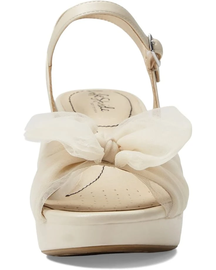- Fabric and synthetic upper with a delicate tulle bow embellishment.