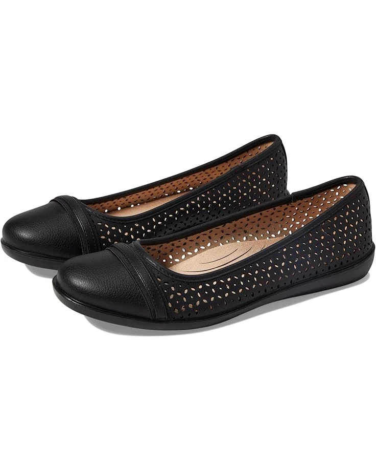 - Take your fashion game a step ahead by wearing the LifeStride® Nile Slip-On Flats, where support meets style. The low-top loafers are expertly designed with a faux leather upper with a round toe, decorative cutout accents, strap detail at the toe, soft fabric linings, and lightweight-flexible design. The Soft System® comfort package provides all-day support, flex and active arch contoured insole with extra arch support provides good cushioning for comfort with every step you take.