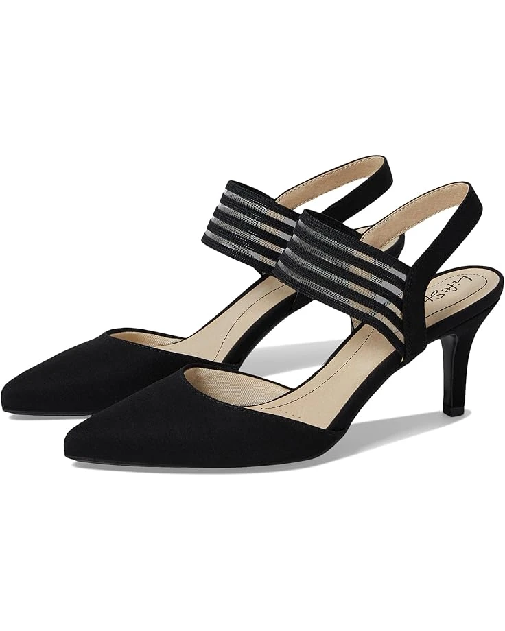 This shoe is a definite “must try” due to the versatile styling, classic while still on-trend. I ordered the shoe in a wide width but the pointed toe box and stretchy strap are still “snug” on me even though the length is perfect. Because of the width restriction, it would not be comfortable for me walking or even standing for long periods of time – which is a drawback for ALL Lifestride pumps because they tend to skimp on the padding at the front ball/toe of the shoe even though the padding at the heel is good. Why, Lifestride?