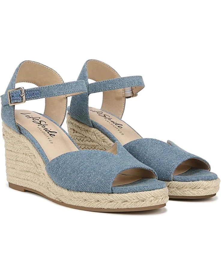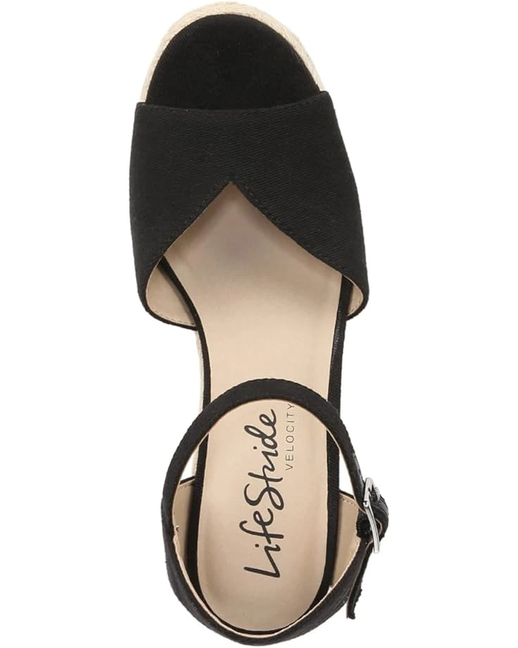 - Walk in comfort wearing the LifeStride® Tess Wedge Espadrille Sandals. Crafted from polyurethane upper, this pair of sandals features round toe design, wedge heel, synthetic luxe lining, premium foam insoles, and ankle strap buckle closure.